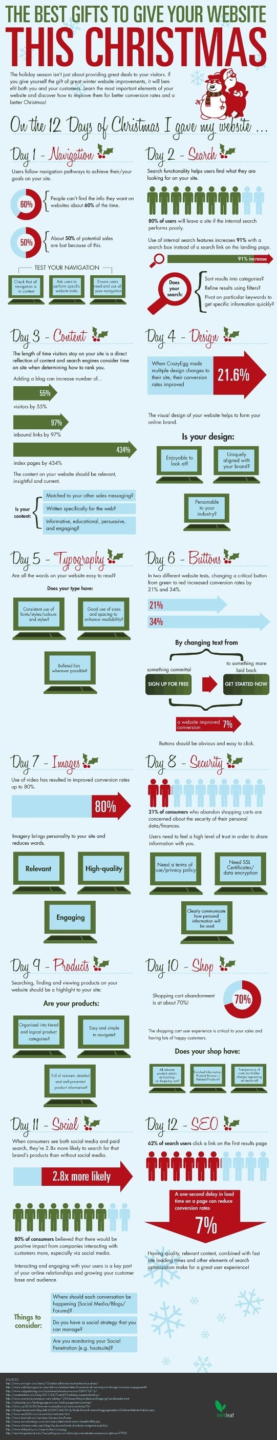 За время новогодних каникул каждый владелец продающего сайта может значительно усовершенствовать его, выполняя хотя бы по одному пункту в день из приведенной Mashable инфографики.