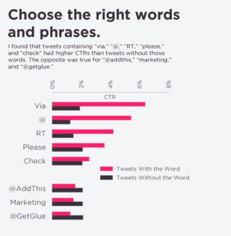 Результаты исследования, проведенного известным западным аналитиком Дэном Зарреллой (Dan Zarrella), основывались на детальном анализе более чем 200 000 твитов, содержащих ссылки на различные ресурсы. В ходе анализа удалось выделить несколько ключевых моментов, способных существенно повысить CTR твита. Перечислим их: