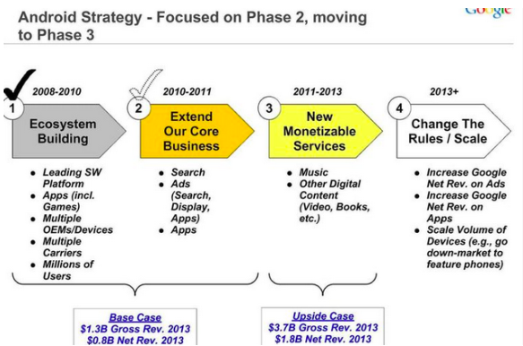 Вот как видели представители Google стратегию перераспределения доходов и дальнейшие пути развития мобильной платформы в 2010 году (документ попал на рассмотрение в суд в минувшую среду, 25 апреля 2012 года):