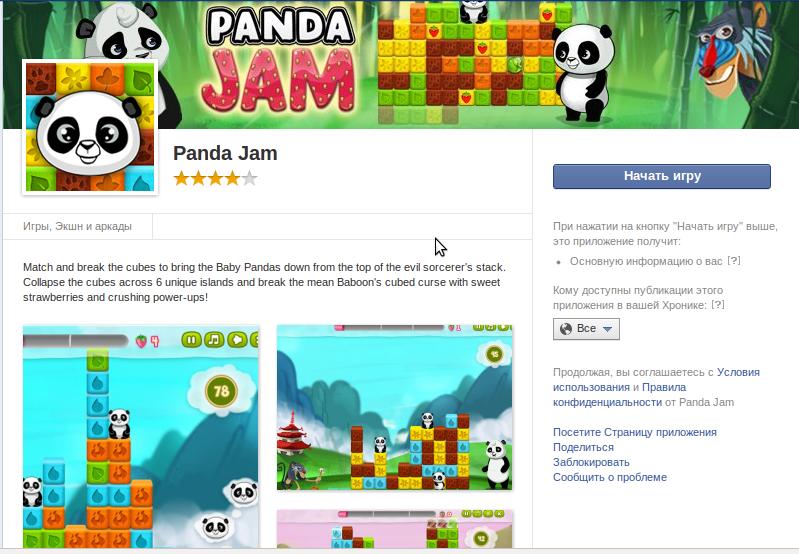 В новом Центре Приложений Facebook предпочел вообще убрать термин «права доступа». Вместо демонстрации «Запрос на право доступа» и кнопки «Принять», Facebook направляет пользователей на страницу, полную цветными картинками и с единственной кнопкой, помеченной «Начать игру».