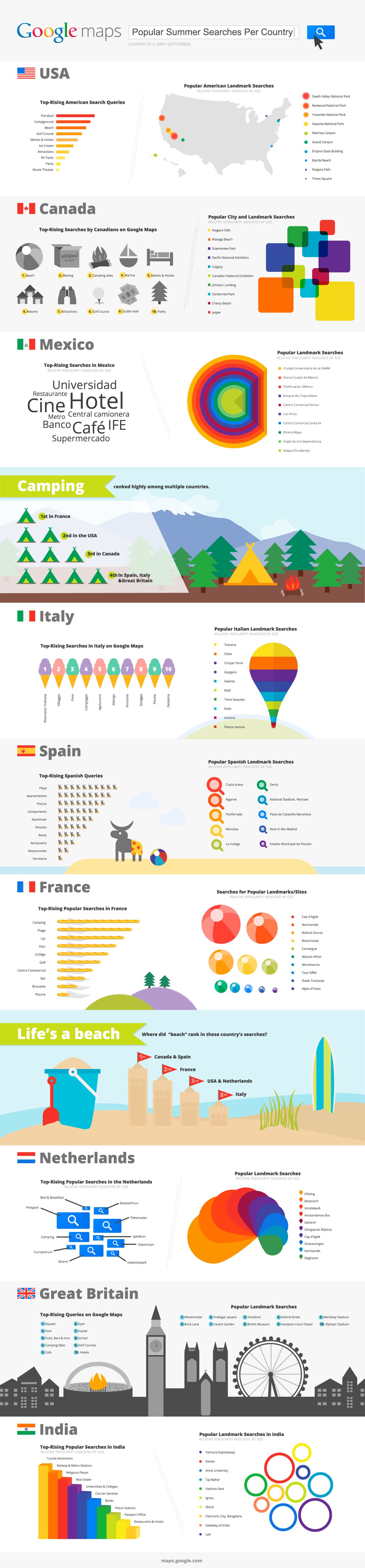 Ознакомившись с инфографикой о летних путешествиях пользователей Google Карт, читатели searchengines.ru могут сравнить свои летние поездки с самыми модными направлениями лета.