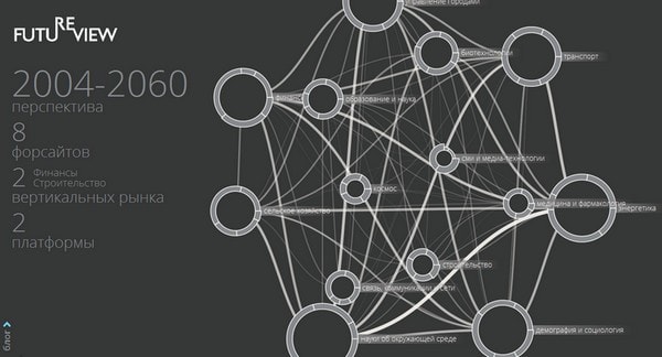 Медиалаборатория РИА Новости при поддержке ОАО «РВК» запустила новый исследовательский проект Futureview, позволяющий спрогнозировать будущее, увидеть связи между различными сферами и индустриями в разные периоды времени до 2100 года.