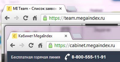 Кроме того, на своей официальной странице ВКонтакте, команда MegaIndex сообщила о начале перехода на работу сервисов по защищенному протоколу SSL. На сегодня система https://team.megaindex.ru/ и кабинет https://cabinet.megaindex.ru/ уже работают по протоколу HTTPS: