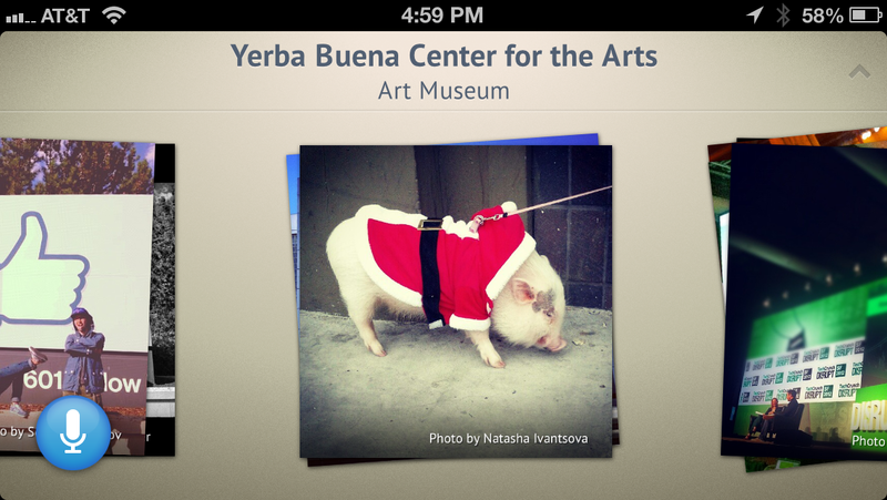 В людном месте Wonder предлагает воспользоваться клавиатурным вводом и облегчает запрос, давая персонализированные подсказки по именам друзей, городам, которые они посещали, категориям заведений и музыкальным жанрам.