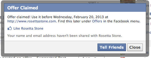 Когда пользователь выбирает «Remind me», он может также сообщить о предложении своим друзьям, нажав «Tell friends». Раньше друзья видели это в своей ленте в любом случае, если пользователь нажал «Get offer». Теперь пользователь сможет выбирать, уведомлять об этом друзей или нет.