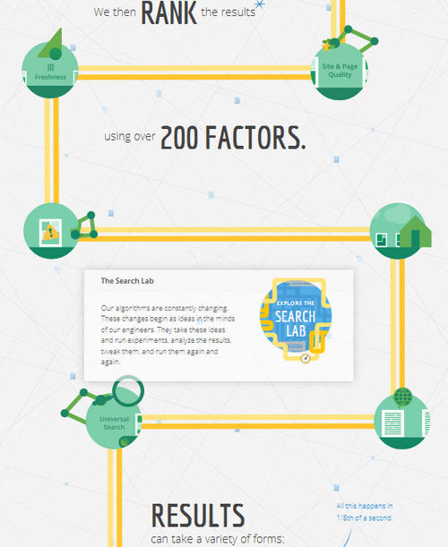 Поиск Google рассказал, что происходит между нажатием кнопки «Поиск» и появлением страницы с результатами на специально созданном сайте «Как работает поиск». Теперь пользователи поиска Google могут посмотреть на процесс изнутри: начиная от сканирования и индексирования информации из сети, заканчивая выводом в результатах поиска данных, соответствующих запросу.