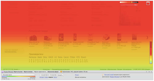 С помощью Карты скроллинга можно узнать, сколько времени посетители сайта просматривают различные элементы страницы. Эта информация поможет владельцу сайта подобрать оптимальную длину страницы и правильно разместить на ней важную информацию.