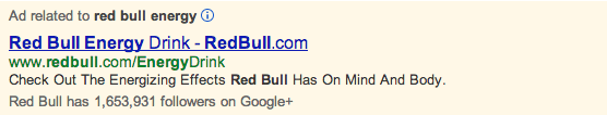 Социальные рекомендации будут автоматически добавляться в объявление там, где они могут увеличить его эффективность, все что нужно рекламодателю — страница Google+ со значительным количеством подписчиков и сайт с адресом, совпадающим с URL поисковой рекламы.