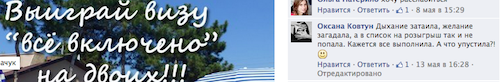 Одна из участниц конкурса, Оксана Ковтун, пожаловалась, что выполнила все условия и не вошла в список участвовавших в розыгрыше, так как ее комментарий к конкурсу был сознательно скрыт администрацией.