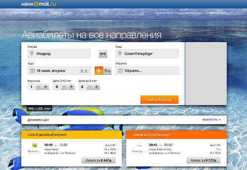 Компания Mail.ru Group сообщила о запуске сервиса онлайн-поиска авиабилетов Авиа Mail.Ru.