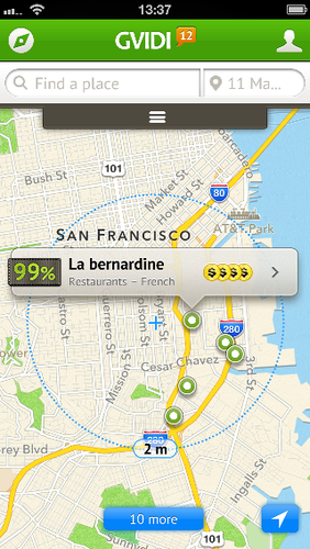 Как пишет блог TechCrunch, бесплатный мобильный сервис по интеллектуальному поиску и подбору ресторанов, кафе, баров с учетом персональных предпочтений пользователя - Gvidi, разработанный российской компанией AlterGeo, теперь официально запущен в США. Данное событие ознаменовало собой новую веху в истории российских разработчиков приложений - отечественные программные продукты стали выходить на западный рынок и запускаться для широкой аудитории.