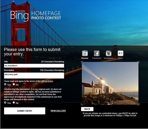 Желающие поучаствовать в конкурсе могут размещать фотоизображения городских пейзажей на специальной странице Bing в Facebook’е до 3 сентября 2013 года. Сообщается, что наиболее удачные изображения будут проиндексированы алгоритмами поиска и попадут в поиск по картинкам Bing.