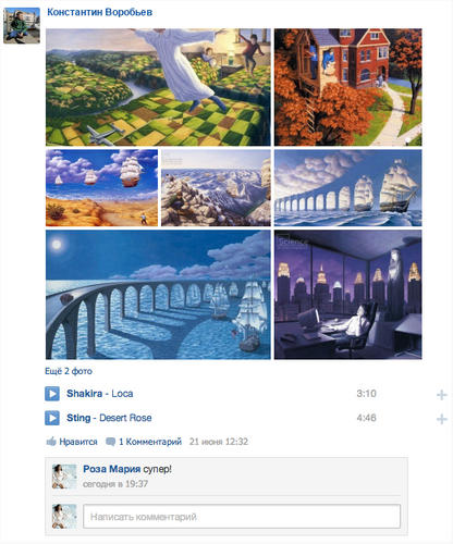 Новый функционал позволяет сделать сообщения в ленте новостей полнее и подробнее. Например, теперь можно не просто рассказать в ленте новостей о чем-то поразительном, но и приложить фотографию и соответствующую настроению музыку:
