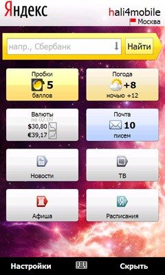 Яндекс представил свежую версию программы Мобильный Яндекс для популярных touch-телефонов с системой Symbian и WinMobile.