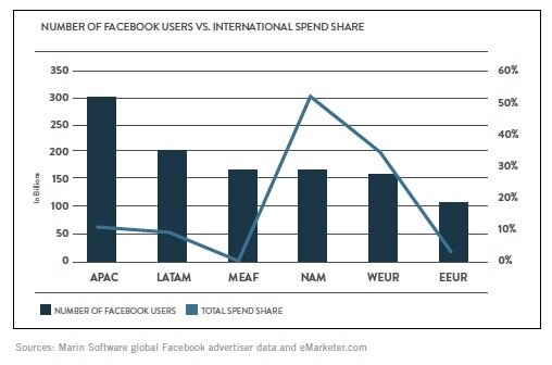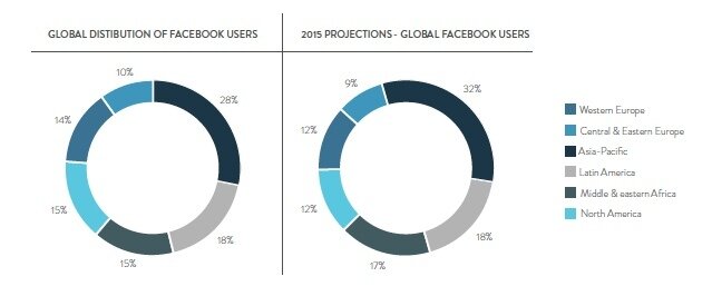 Лидером по числу пользователей Facebook’а сегодня является Азиатско-Тихоокеанский регион (АТР). Согласно прогнозам, к 2015 году общемировая доля пользователей Facebook в АТР должна возрасти с 28% до 32%. Несмотря на это крупнейшие мировые бренды вкладывают в рекламу в данном регионе в 5 раз меньше инвестиций, чем, к примеру, в Северной Америке.