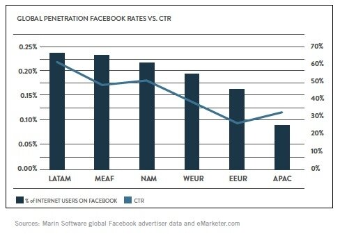 Результаты недавнего исследования Marin Software показали, что СТR рекламы на Facebook’е в странах Латинской Америки превышает 60%.