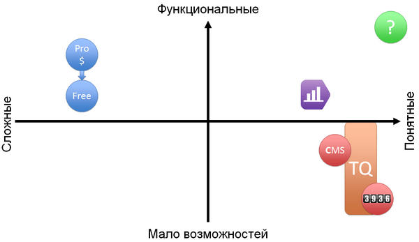 Яндекс.Метрика находится в поле на стыке функциональности и понятности. Как уже анонсировалось ранее, Яндекс готовит к запуску новую Метрику 2.0, которая должна занять собой пустующую нишу между функциональностью и понятностью.