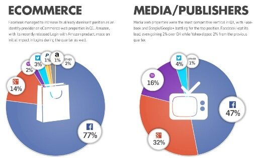Для регистрации на продающих сайтах пользователи по всему миру выбирают Facebook-аккаунты. В то же время авторизация на сайтах издателей зачастую осуществляется не только через учетные записи в Facebook’е, но и через аккаунты в Google+ и Yahoo: