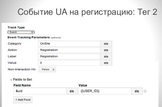 Затем необходимо настроить еще 2 события: событие UA на регистрацию и событие UA на логин.