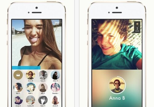 Интерфейс приложения сделан по типу SnapChat и SlingShot Facebook’a, где одна половина – камера, а другая – список контактов. Одиночное касание экрана используется для изменения ориентации камеры (она может быть направлена вовнутрь (для селфи) и наружу), двойное – для добавления текста.