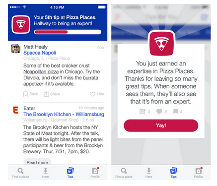 «С момента запуска Foursquare советы и подсказки оставались одной из наиболее значимых функций. Люди в большом количестве делились различными мнениями и подсказками, информируя, к примеру посетителей ресторанов, обо всём, что не в ходит в меню: хороших видах из окна, наличии бесплатного wifi в заведении и т.д. Это прекрасно, получать знания и передавать их другим!
