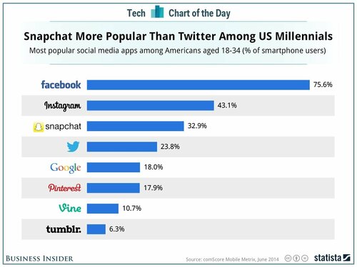 Snapchat вошел в тройку самых популярных социальных приложений. Долгое время доминирующая тройка состояла из Facebook, Twitter и LinkedIn. Но после отказа Facebook’у в продаже сервиса за 3 млрд. долл. США и текущих переговоров об инвестициях в размере 10 млрд. долл. США расстановка сил изменилась.