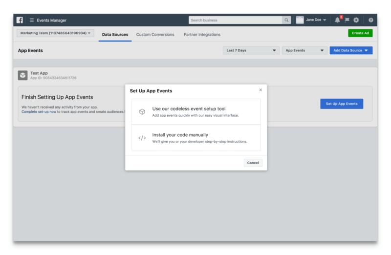 Чтобы получить доступ к новому инструменту, приложение должно быть создано с использованием Facebook SDK. Codeless App Events Setup находится в пакете Marketing Kit в последней версии SDK (4.34.0).
