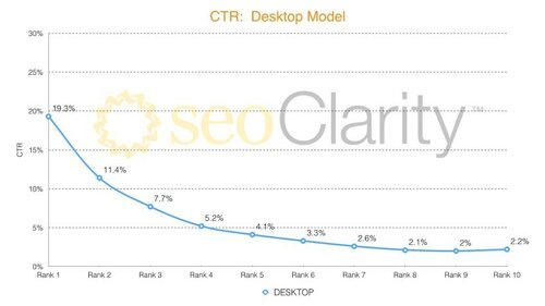 При аналогичном анализе поиска на дексктопах падение CTR с первой до второй позиции значительно меньше: 19,3% против 11,4%.