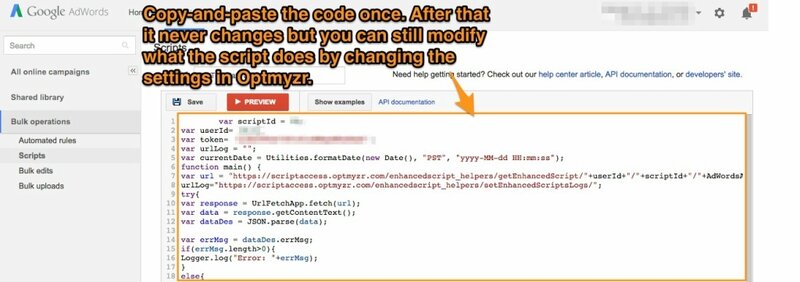 Скопируйте и вставьте код один раз. После этого он никогда не меняется, но вы все еще можете изменить то, что делает сценарий, изменив настройки в Optmyzr.