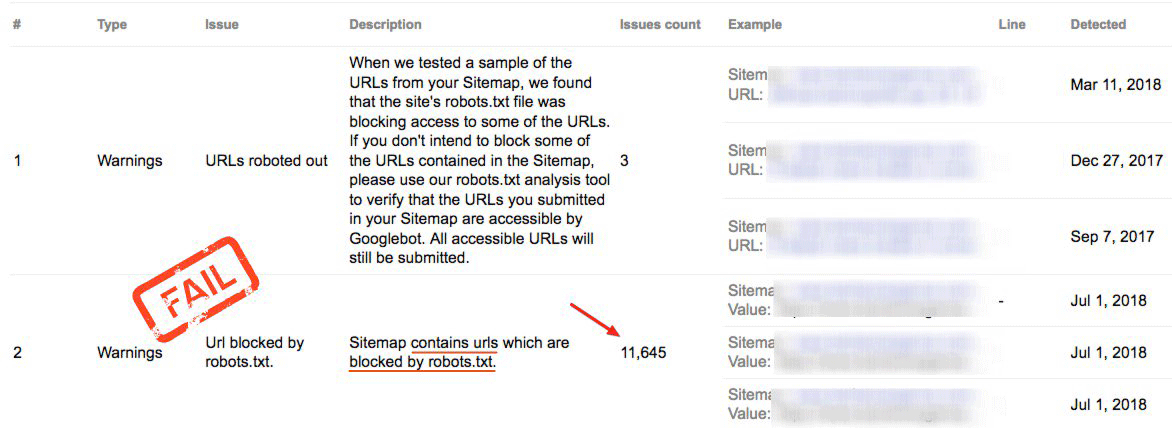 На днях Блейвейс поделился скриншотом отчёта по файлам Sitemap, в котором в качестве ошибки были указаны более 11 тыс. URL, заблокированных в файле robots.txt. Однако в отчёте об индексировании эти данные отсутствовали.
