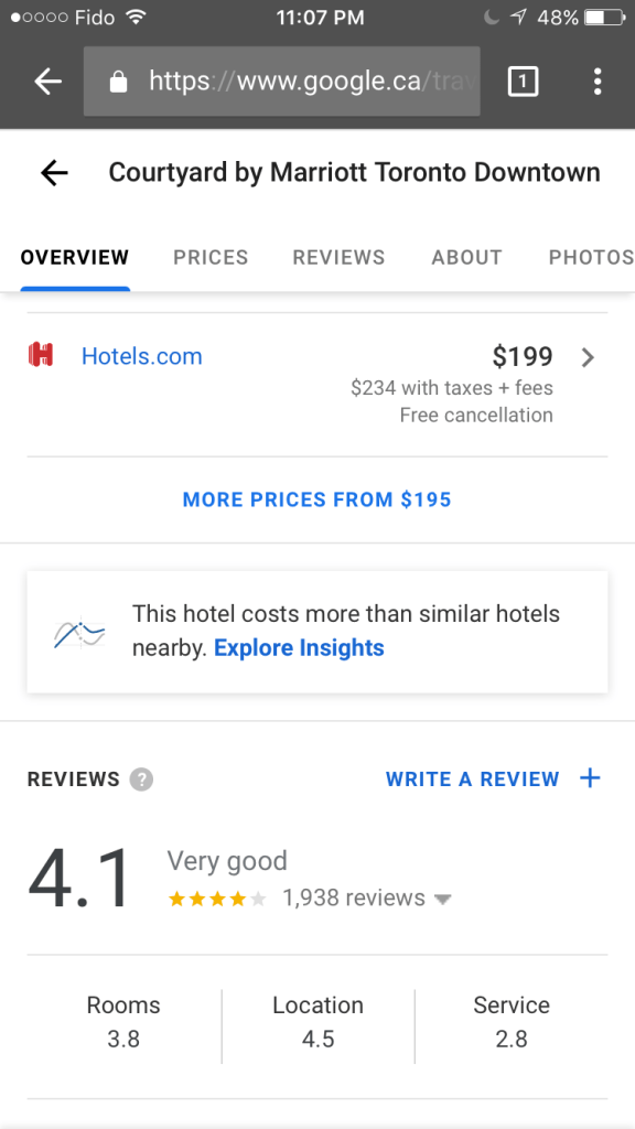 Напомним, что в этом месяце Google тестировал ещё два нововведения в поиске по отелям: вкладку «Location» с подробной информацией о месте расположения гостиницы и развлечениях, доступных поблизости, а также график цен по конкретному отелю.