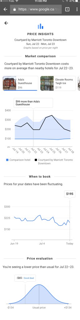 В новом блоке также содержится кнопка «Explore Insights», при нажатии на которую пользователь попадает на страницу с тремя графиками и каруселью похожих отелей для сравнения цен.