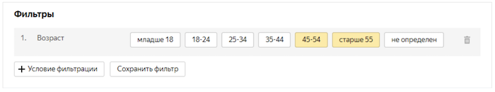 В корректировках ставок и статистике Директа появились две новые возрастные группы - 45-54 года и старше 55 лет. С помощью корректировок можно нацелить или, наоборот, исключить показ объявлений для выбранной группы, и пользователи таким образом увидят более релевантные предложения.