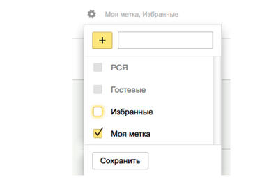 Добавить или убрать уже существующие метки, а также просмотреть все назначенные тому или иному счетчику метки можно на странице списка счетчиков в колонке Метки. Чтобы добавить или убрать метки, надо воспользоваться специальной кнопкой и проставить галочки во всплывшем окне: