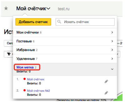 Метки, они же тэги - это способ обозначить принадлежность счетчика определенной группе. Пользоваться метками надо примерно так же, как тэгами и хэштегами в блогах и сообщениях: любой счетчик может быть помечен произвольным количеством меток. Метки создает сам пользователь, кроме этого существует четрые системные метки, присваивающиеся счетчикам автоматически.