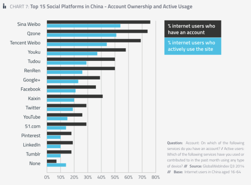 В Китае продолжают доминировать отечественные социальные сети. Из международных сервисов на первое место вышел Google+, Facebook занял вторую позицию.