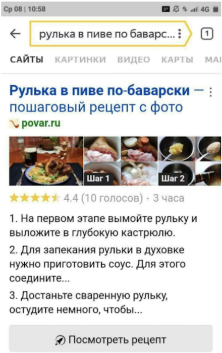 Поисковики давно говорят о важности адаптации сайта для мобильных устройств и предлагают свои технологии быстрой загрузки контента: турбо-страницы и AMP (Accelerated Mobile Pages). Яндекс и Google составляют карусели из легких версий страниц сайтов, делают специальные блоки с видео-рецептами, расширенную выдачу информации, дополнительно привлекая площадке трафик. За счет того, что для раздачи контента используется быстрая распределенная сетевая инфраструктура поисковиков, загрузка происходит мгновенно. Это снижает количество отказов пользователей, которые не готовы ждать.