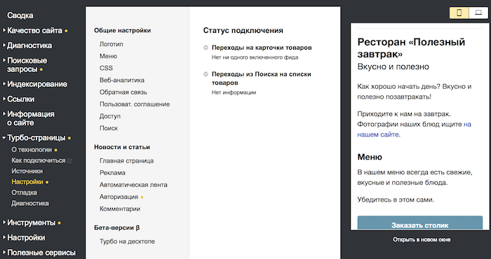 Списки товаров доступны для всех интернет-магазинов, подключенных к Турбо. Для удобства они по умолчанию активированы в Вебмастере, а отключить настройку можно в один клик.