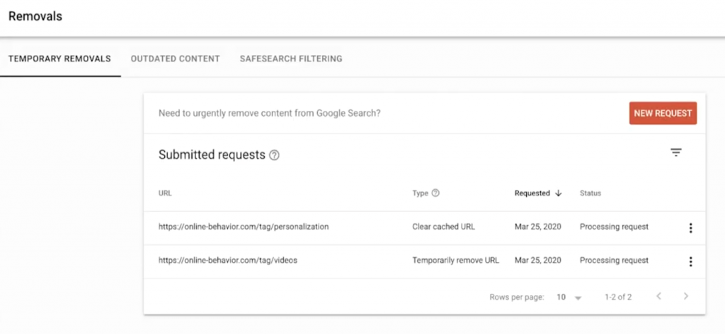 Напомним, что в январе Google запустил обновлённую версию этого инструмента. Раньше он позволял только временно скрывать страницы из результатов поиска, а данные по Безопасному поиску и устаревшему контенту были недоступны.