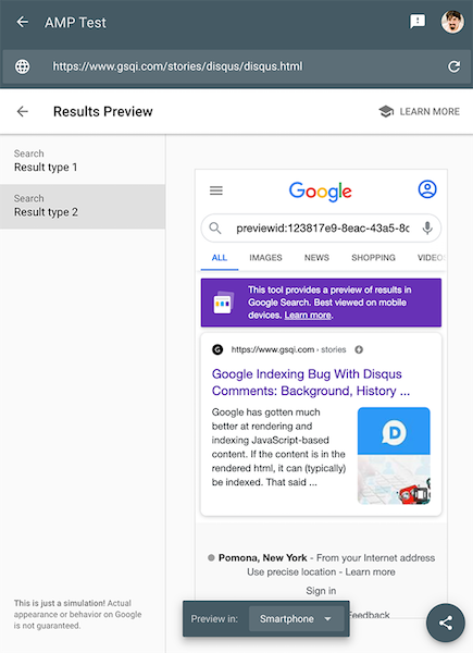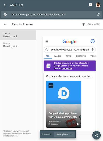 Редактор Search Engine Roundtable Барри Шварц провел тест для опубликованной ранее AMP-страницы этого формата, и да, теперь в панели инструментов она отображается как Web Story. Он также приводит два варианта превью для отображения этой страницы в результатах поиска: