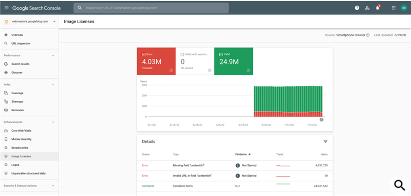 Google добавил в Search Console поддержку нового типа структурированных данных – лицензии на изображения.