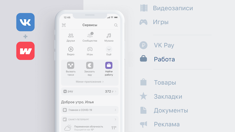 ВКонтакте появился раздел «Работа». В нем можно опубликовать резюме и откликнуться на вакансии, которые подбираются индивидуально для каждого пользователя. Раздел запущен вместе с сервисом Worki, который ранее был представлен в VK в виде мини-приложения на базе платформы VK Mini Apps.