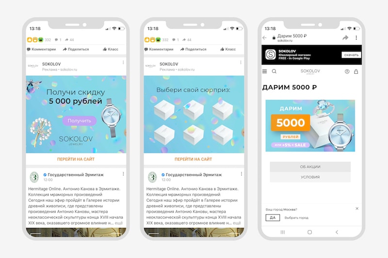 По результатам тестовых кампаний интерактивный рекламный формат в среднем приносит в три раза больше конверсий, чем стандартные промопосты и позволяет эффективнее рассказать о продукте и сподвигнуть пользователя к целевому действию. Одним из первых новый формат протестировал бренд ювелирных украшений SOKOLOV. По сюжету игры пользователь должен выбрать свой сюрприз из представленных на экране коробочек с украшениями. По итогам интерактива каждый, кто выполняет задание, получает купон или скидочный промокод на покупку ювелирных украшений бренда.