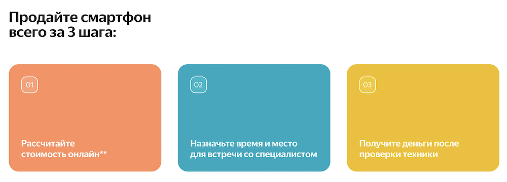 Для продажи использованного устройства нужно оставить заявку в приложении или на сайте Маркета. Дальше с владельцем смартфона свяжется компания-партнер маркетплейса и договорится о встрече со специалистом. На месте он проверит телефон на исправность и внешний вид – и в зависимости от этого определит цену смартфона. Если предложение устроит, владелец телефона сможет сразу подписать договор купли-продажи и получить деньги на банковскую карту или наличными.