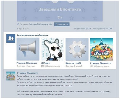 Этот формат можно использовать для того, чтобы рассказать о своем сообществе на странице «Мои новости» — между обновлениями от друзей и сообществ, на которые подписан пользователь.