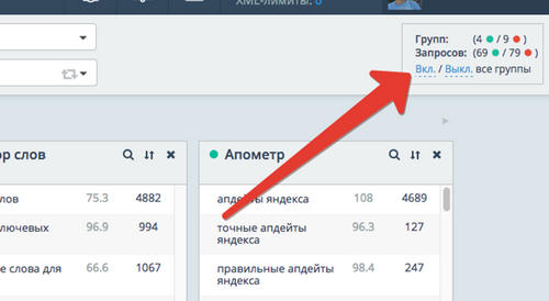 Вместе с кластеризацией появилась удобная функция массового отключения и включения групп (отключенные группы не участвуют в проверке позиций):