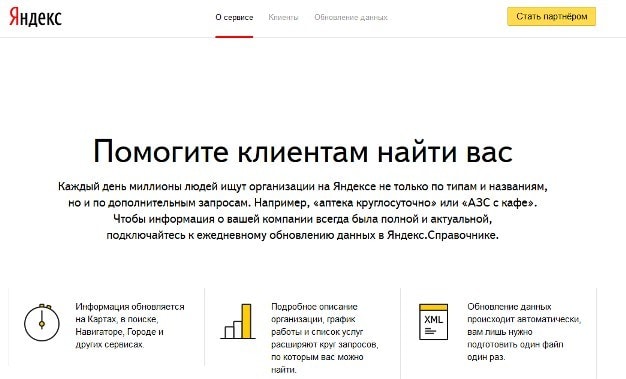 Крупные организации с большим количеством филиалов могут принять участие в партнёрской программе, наладив автоматический экспорт данных в Яндекс.