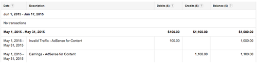 Пользователи Google AdSense смогут увидеть в истории платежей вычеты за недействительные клики, которые вызывают различия между ожидаемым и реальным размером прибыли. Информация будет отображаться в платежной истории, начиная с мая. Например, если пользователь ожидал прибыль в размере 1100 долларов, а получил 1000, он сможет понять, как ожидаемая прибыль раскладывается на потери от недействительных кликов и конечный заработок.