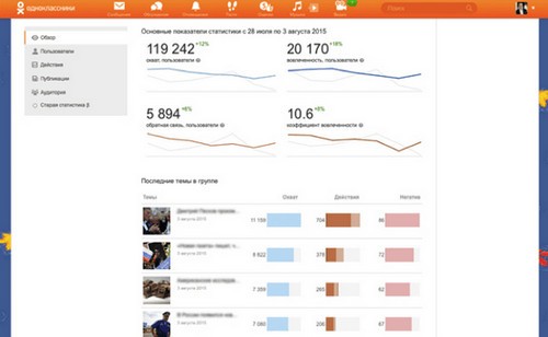 Социальная сеть Одноклассники обновила статистику сообществ, дополнив ее новыми опциями - возможностью отслеживать негатив, количество открытий темы и переходы по ссылкам.