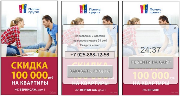 Потенциальному клиенту, заинтересовавшемуся рекламой, достаточно заказать звонок, вписав номер своего телефона в появившийся в баннере виджет, менеджер перезванивает в течении 15 секунд и отвечает на все интересующие его вопросы по тематике предложения на баннере. На лицо экономия времени для клиента и получение горячего лида для компании.